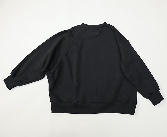 左右袖がアシンメトリーなデザインになりますプルオーバーです。