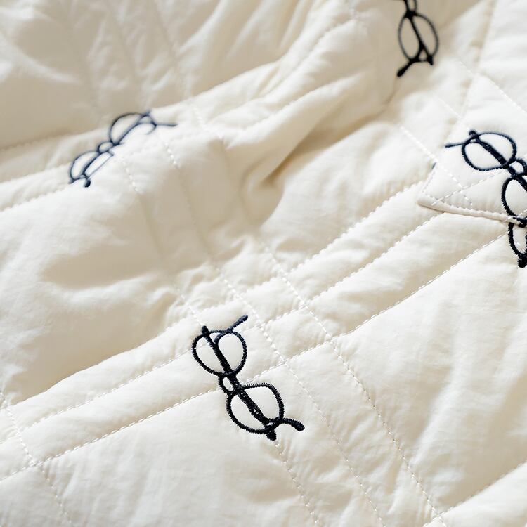 The embroidered glasses motif strikes a perfect balance of charm and coolness,