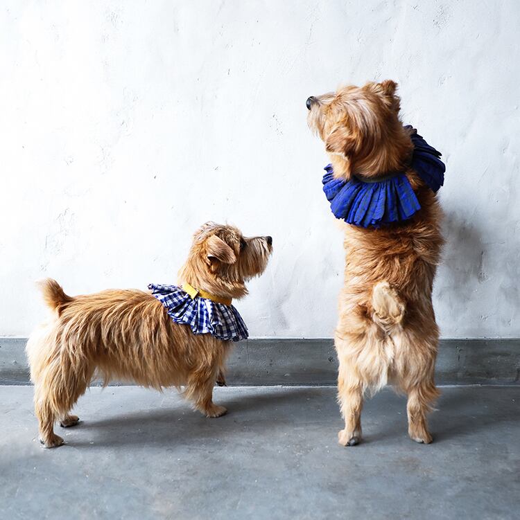同じテキスタイルを用いてワンちゃんサイズのスタイをお作りしました。