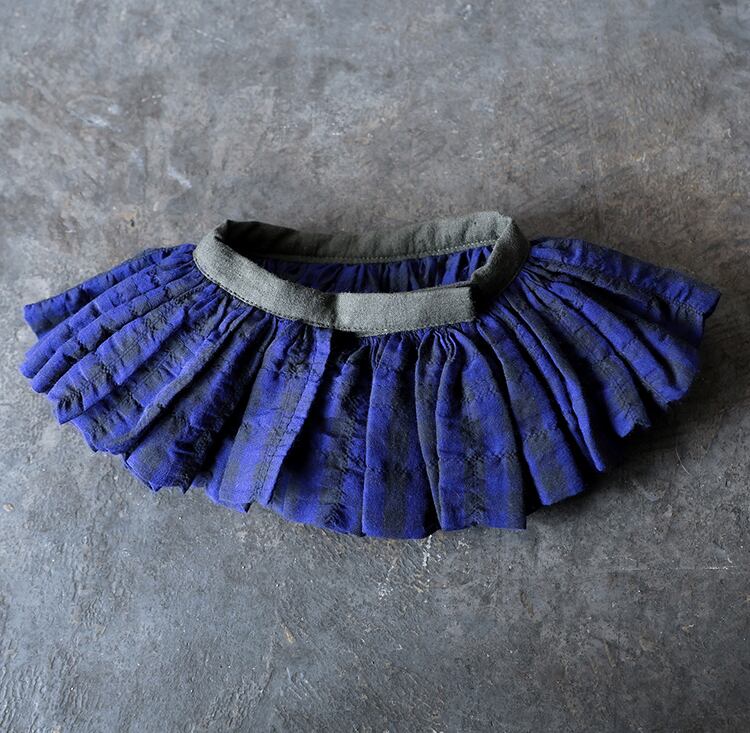 24SSコレクションでのシャーリングチェック柄のギャザー付け衿。