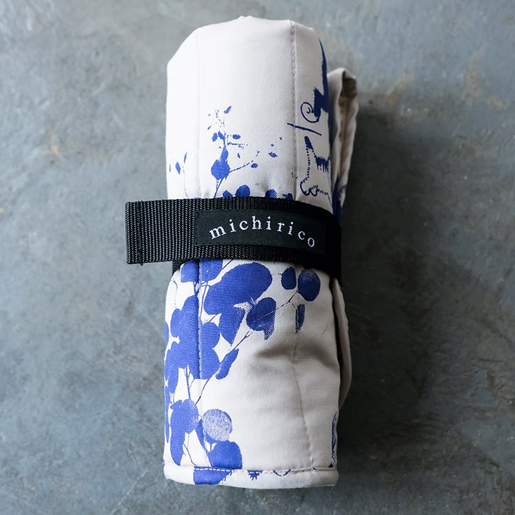 中綿シート入りで少しクッション性があり、持ち運びに便利なベルト付きです。