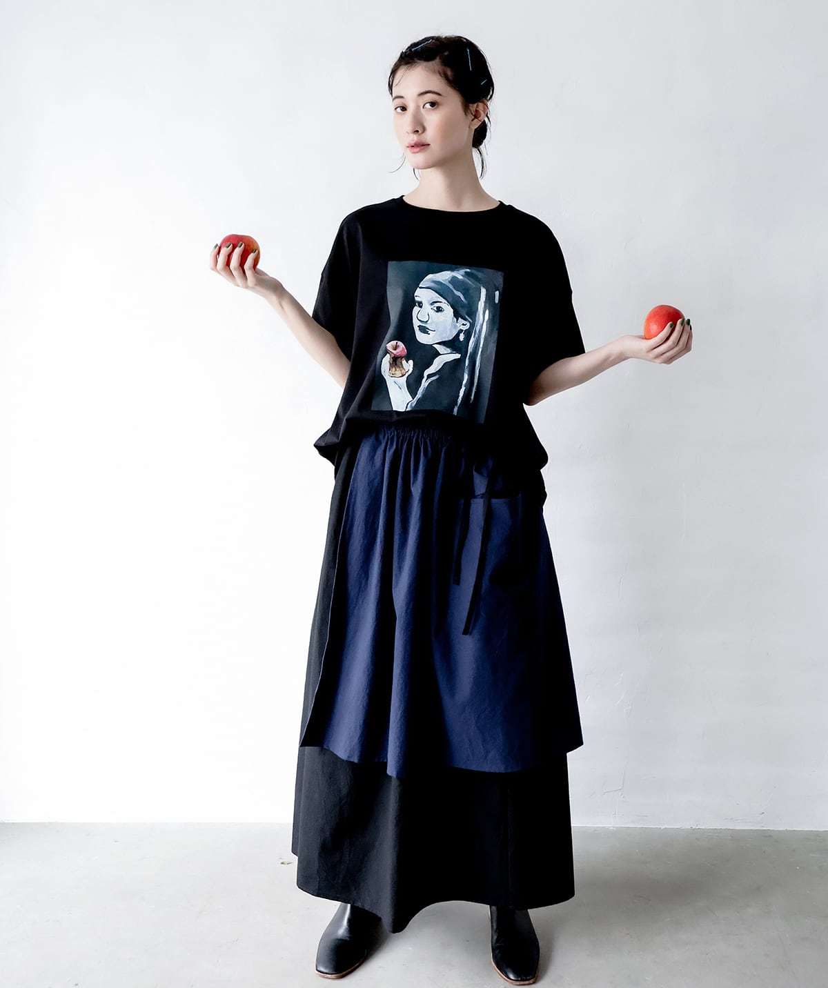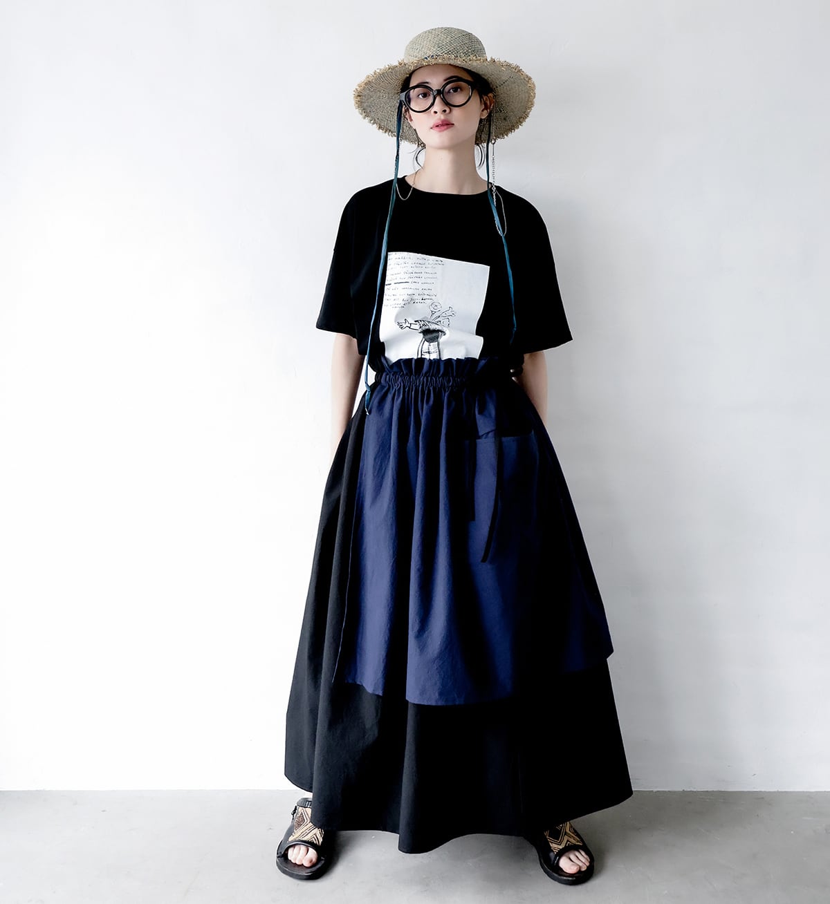 エプロンをイメージした重ねスカートは大きなポケットがついています。