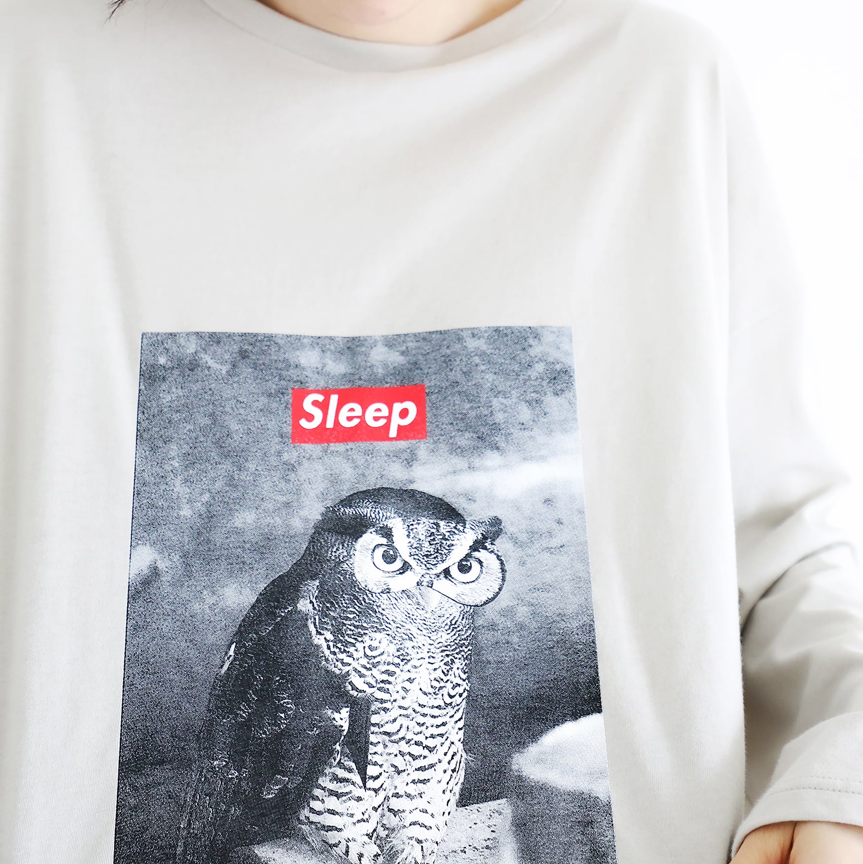 フクロウのアイマスクをコラージュしたプリントTシャツ